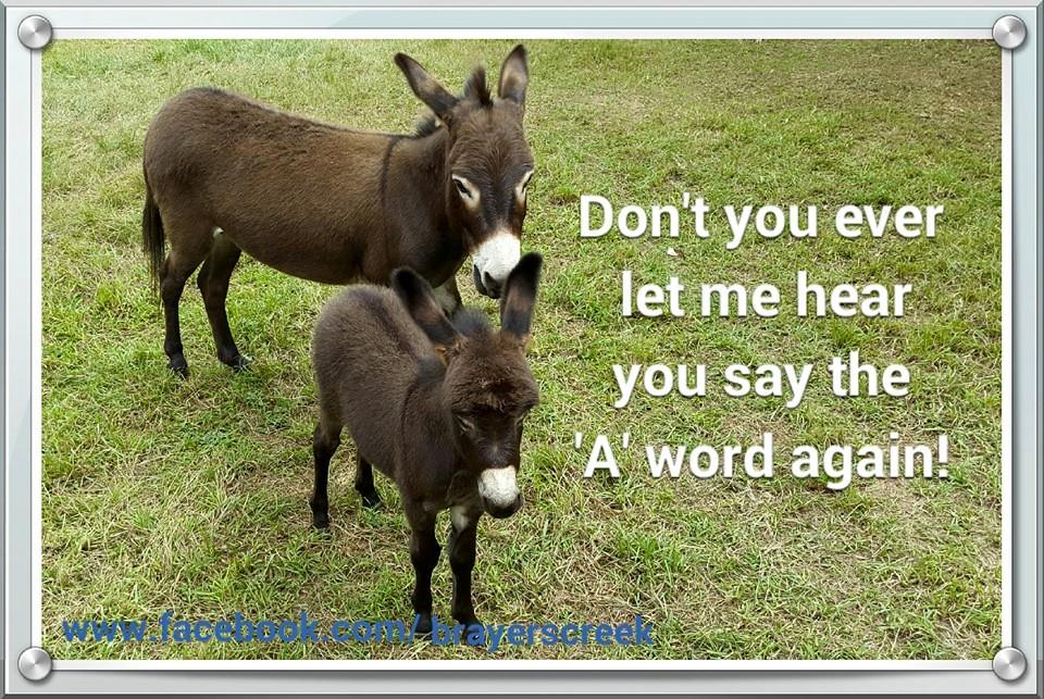 The drill now is, if individual donkeys don't eat their hay at night, they don't get out of the pens until noon the next day. They only get 5 hours out on the 10 acres a day that way. No one is going over on Burroland at all.