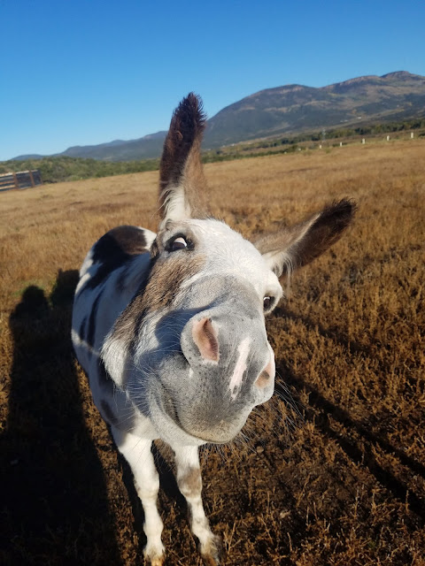 When the donkeys are around the house I always talk to them, I started talking to her and she did not react at all. I clapped my hands, nothing. Don Juan came roaming around and when I talked to him, his ears swiveled and he tried to figure out where the voice was coming from. Now I'm wondering if one of the reasons she is so alert at all times, is because she doesn't hear well, or maybe at all.