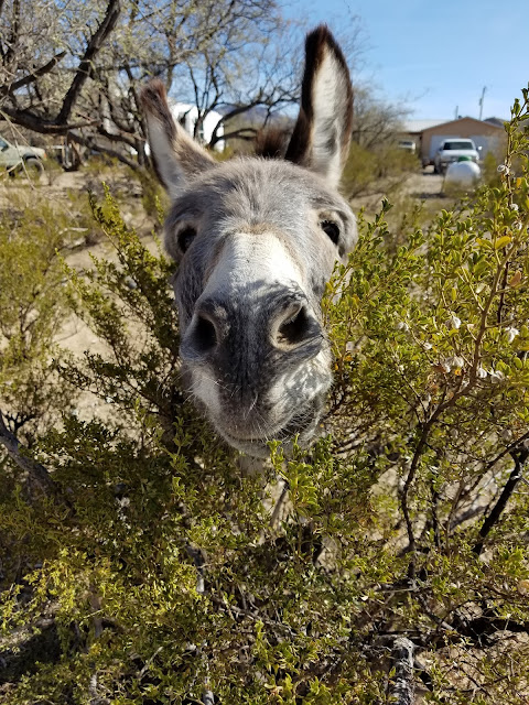 Lake Pleasant is a really nice lake and there is a herd of burros that live there, but we didn't see them. Did see a couple of piles of poo, but that's it.....!! In fact we didn't see any donkeys on the whole trip. We've actually had at least one donkey come thru here, that was from the Lake Pleasant herd.